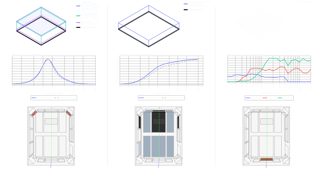 Our Optimized Treatment Packs offer a scientific approach to improving your room acoustics through advanced multi-objective optimization algorithms. These packs generate a customized acoustic treatment plan tailored to your room's unique characteristics, targeting parameters like frequency response, temporal decay, and reverberation time. Choose from three distinct tiers - Basic, Core, and Pro - to find the plan that best aligns with your needs.